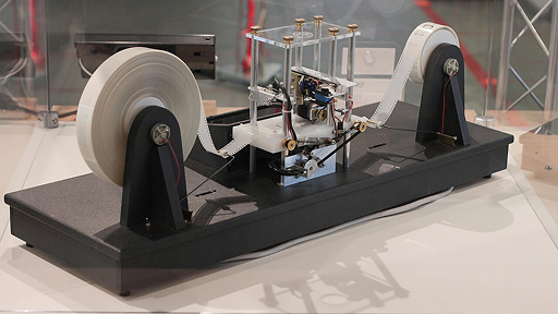 Alan Turing defined the theoretical limits of computation. A simple tape, a reading head, and the birth of modern software logic.